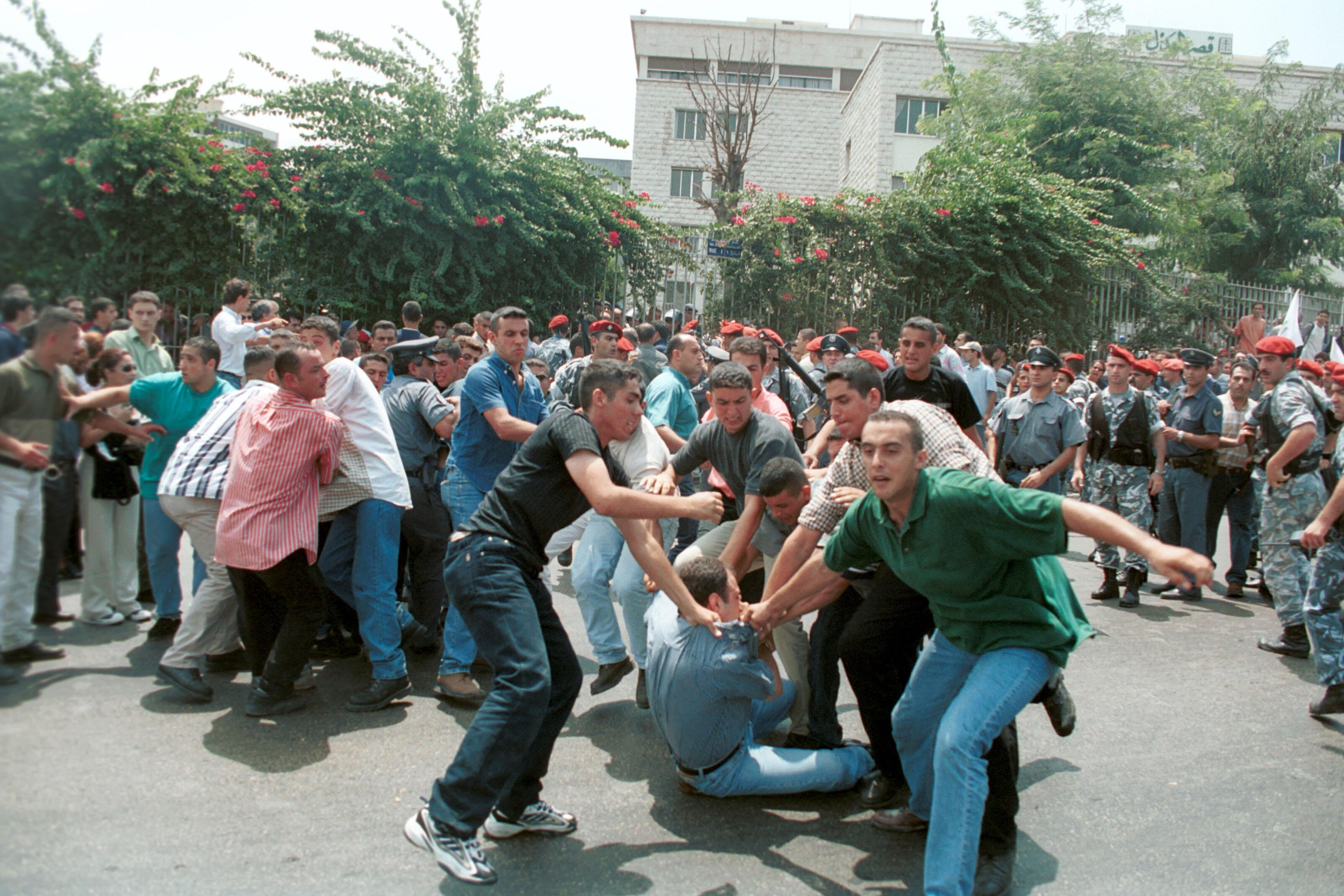 Outre Assouad et Jreissati, les personnes interpellées sont : Oussama Dayaa, Mansour Fadel, Chahid Abboud, Farid Khairallah, Joseph Wanniss, Paul Hakim, Élie Saber, Roger Haddad, Charbel Abi Nakhoul et Jimmy Yaghi. D’autres jeunes, Marwan Lahoud, Fady Lteif et Joseph Abou Jaoudé, blessés, ont été transférés à l’Hôtel-Dieu. Lorsque le calme revient, quelques instants plus tard, il ne reste plus qu’un nombre très réduit de manifestants – et beaucoup de soldats de l’armée – pour applaudir les députés Pierre Gemayel et Antoine Ghanem…