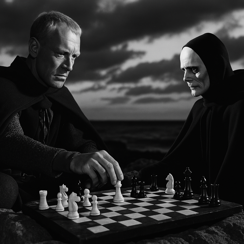 Après avoir longuement patienté, la Mort pense l’avoir finalement remporté, cette partie d’échecs entamée à la fin des années 50.